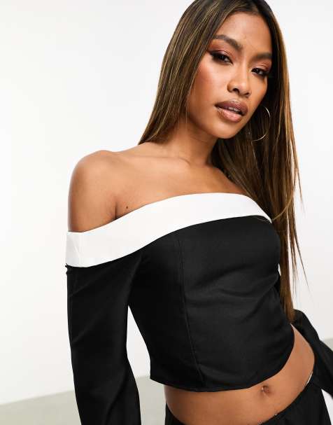 Black and white cheap off the shoulder top